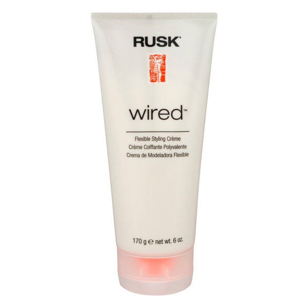 Rusk® Flexible Styling Creme Wired™. 170 g e net wt. 6 oz. Rusk® designer collection™. Flexible style, internal support and texture for any hair type. Rusk® Wired™ Flexible Styling Creme provides flexible body and pliable style support as it creates incredible texture. It lifts, shines and creates soft, gravity-defying body on dry hair. On wet hair it eliminates frizziness and maintains moisture while blow-drying