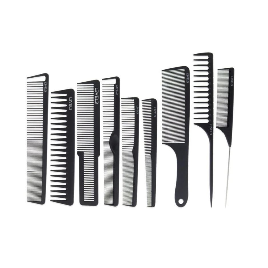 - Set of nine combs of varying sizes (7-10”) and tooth widths